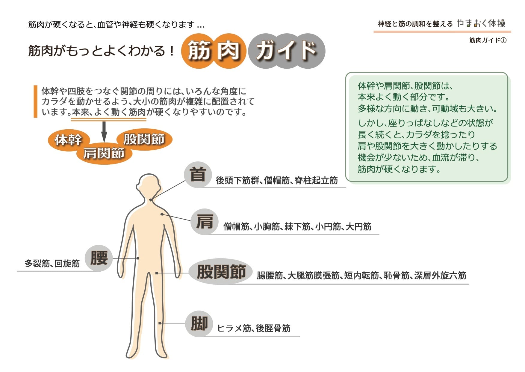 体幹や四肢をつなぐ関節の周りには、いろんな角度に カラダを動かせるよう、大小の筋肉が複雑に配置されています。本来、よく動く筋肉が硬くなりやすいのです。