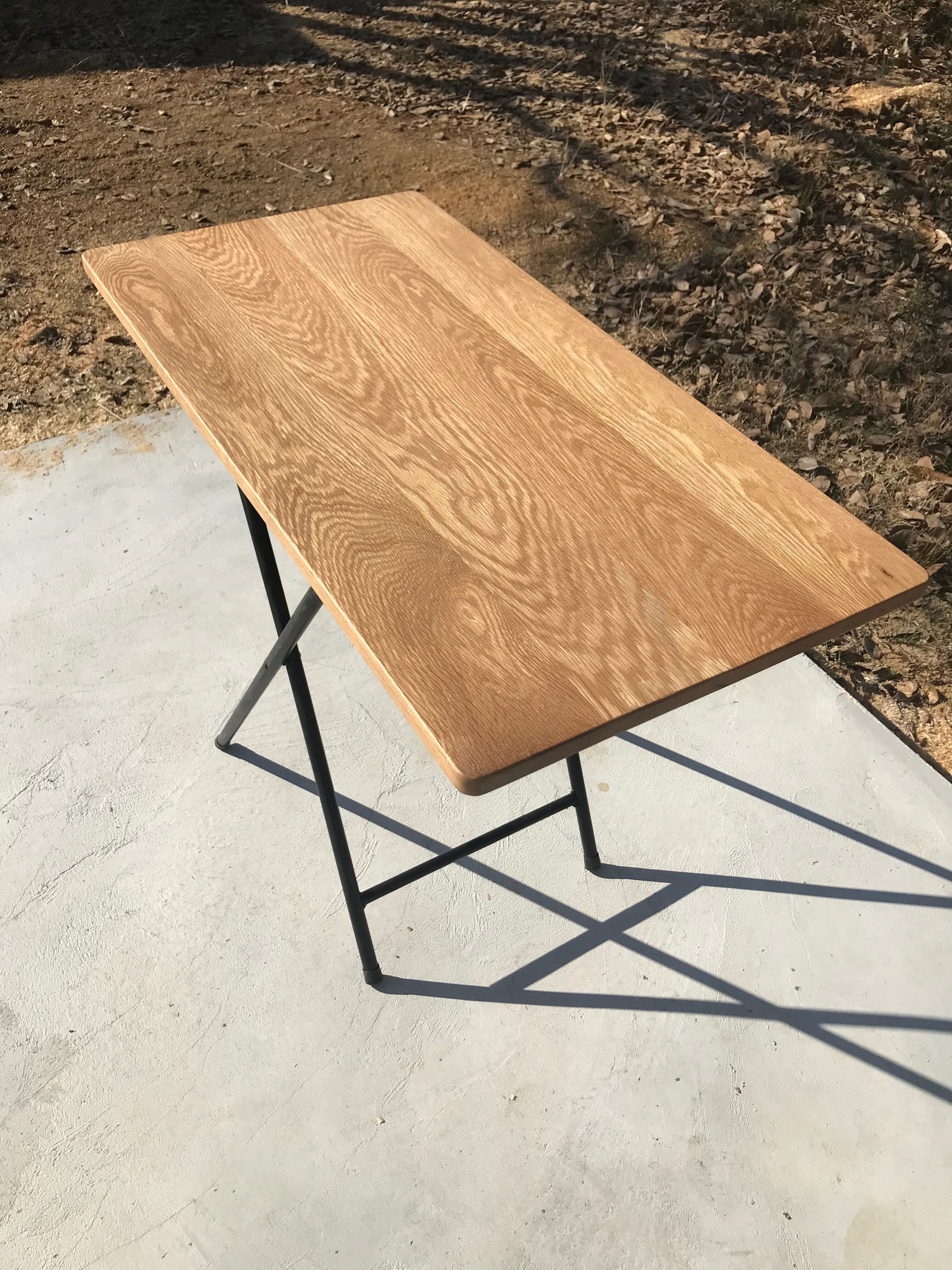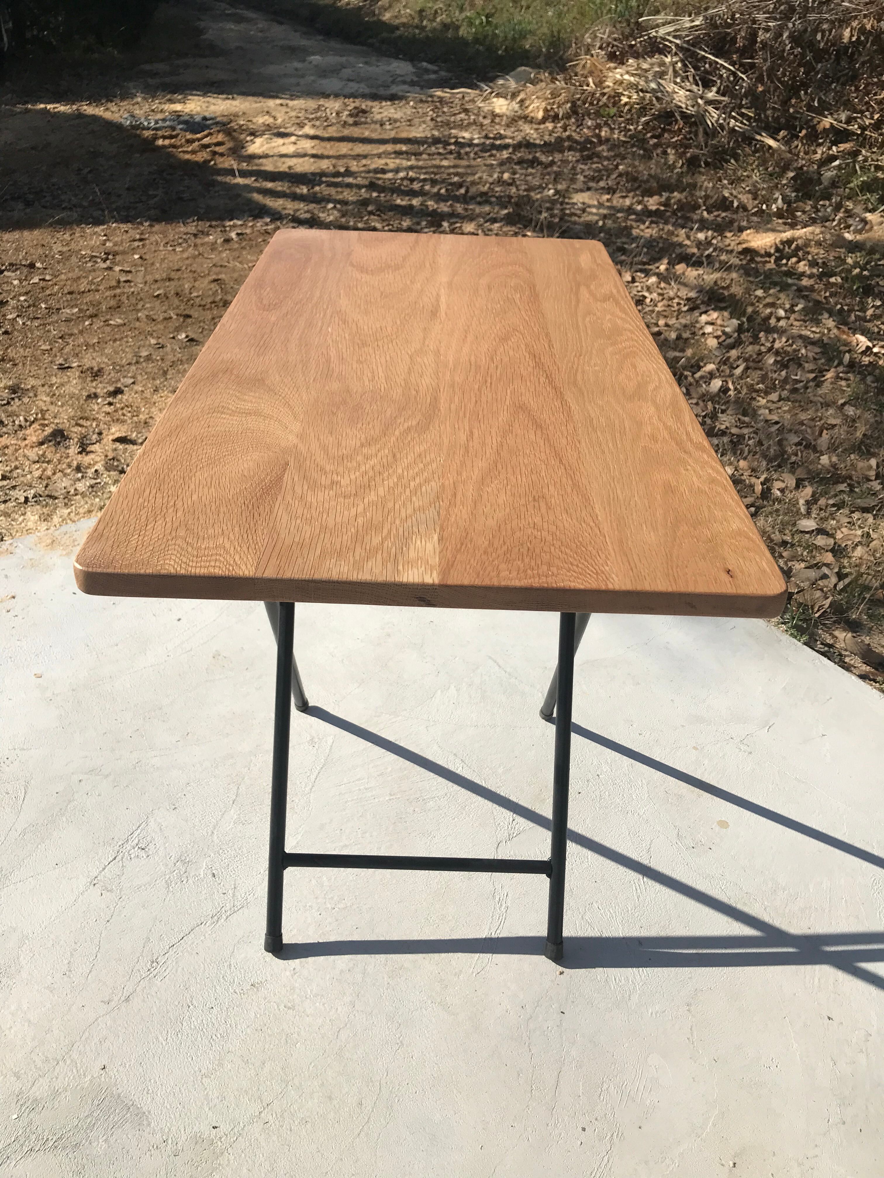 お天気の良い日は、バルコニーに出して、グランピングも楽しめます。天板 ナラ材(クリア塗装) 脚部 アイアン